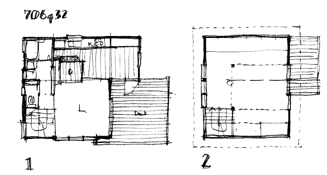記念すべき Be-h@us 第一号は [Be-001 蓼科] Ta さんの山荘です。 2000年の夏前に竣工しました。 平面は 706g32、屋根勾配は8寸でOMソーラーシステムがのっています。開口部はアイランドプロファイル製です。 写真は2001年の11月、雪景色は2002年2月です。